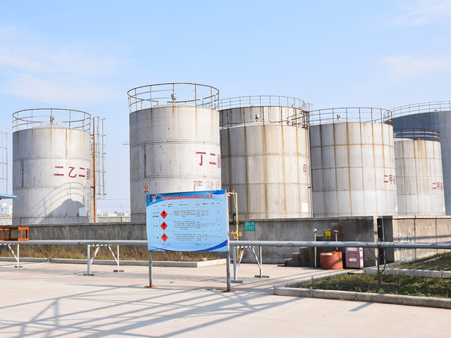 公司占地42畝,現已投產DMF回收處理車間和聚氨酯樹脂車間。DMF回收處置生產線,擁有國內水平及優良的產品檢測分析系統,日處理能力達到300噸以上,并有4個1000M3的廢液儲罐,及1個1000M3及3個300M3二甲基甲酰胺儲罐等儲存設施。